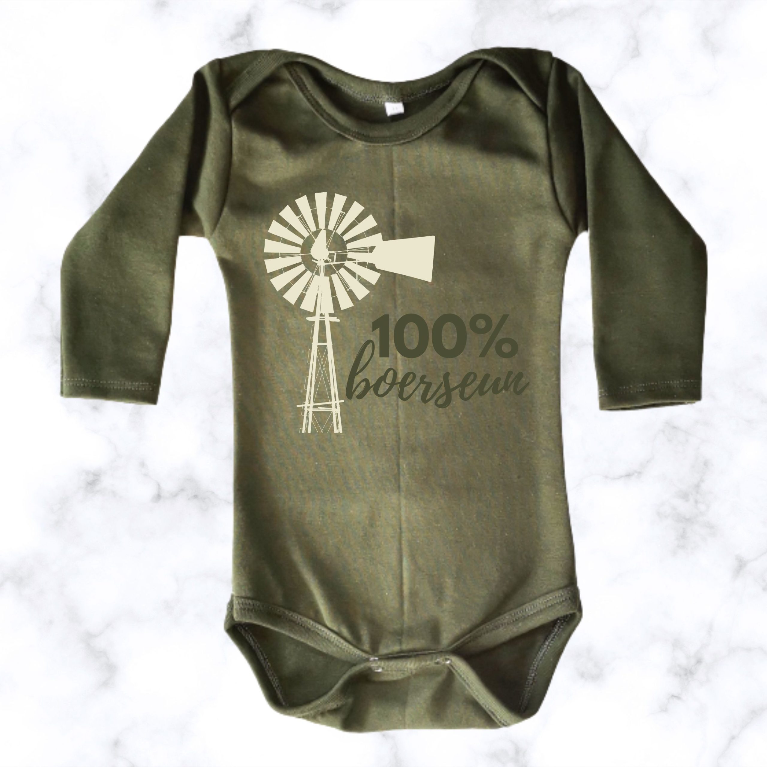 Our 100% Boerseun | Custom Printed Baby Onesie is a cute and playful baby outfit with a sweet front print. Soft, comfortable, and lovely for everyday wear, gifting, or baby photos.