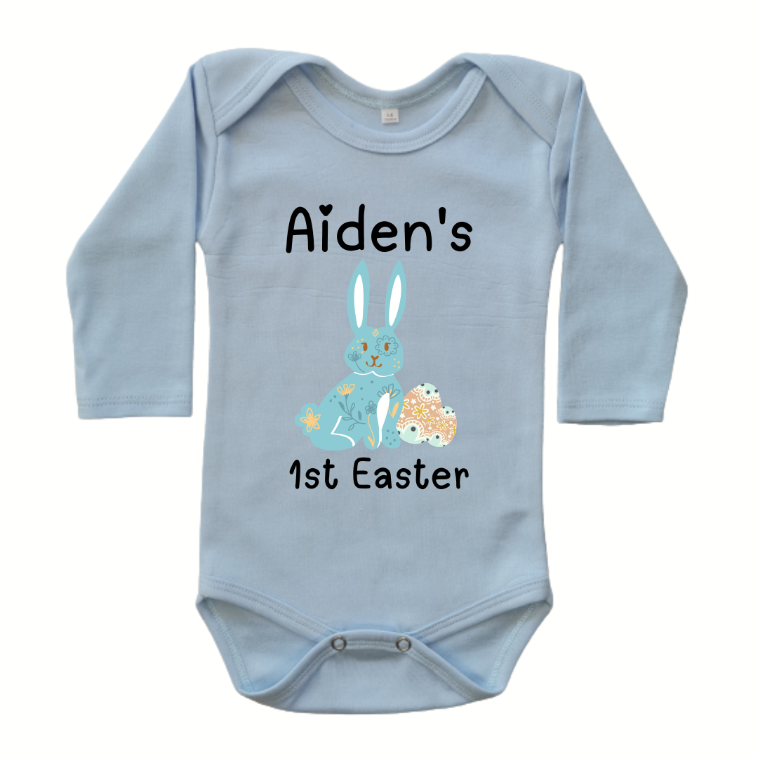 Hop into the Easter spirit with our adorable Blue Easter Bunny | Custom Printed Baby Onesie! Whether your little one is celebrating their first Easter or simply looking cute for an egg hunt, this onesie is the perfect outfit for the occasion.