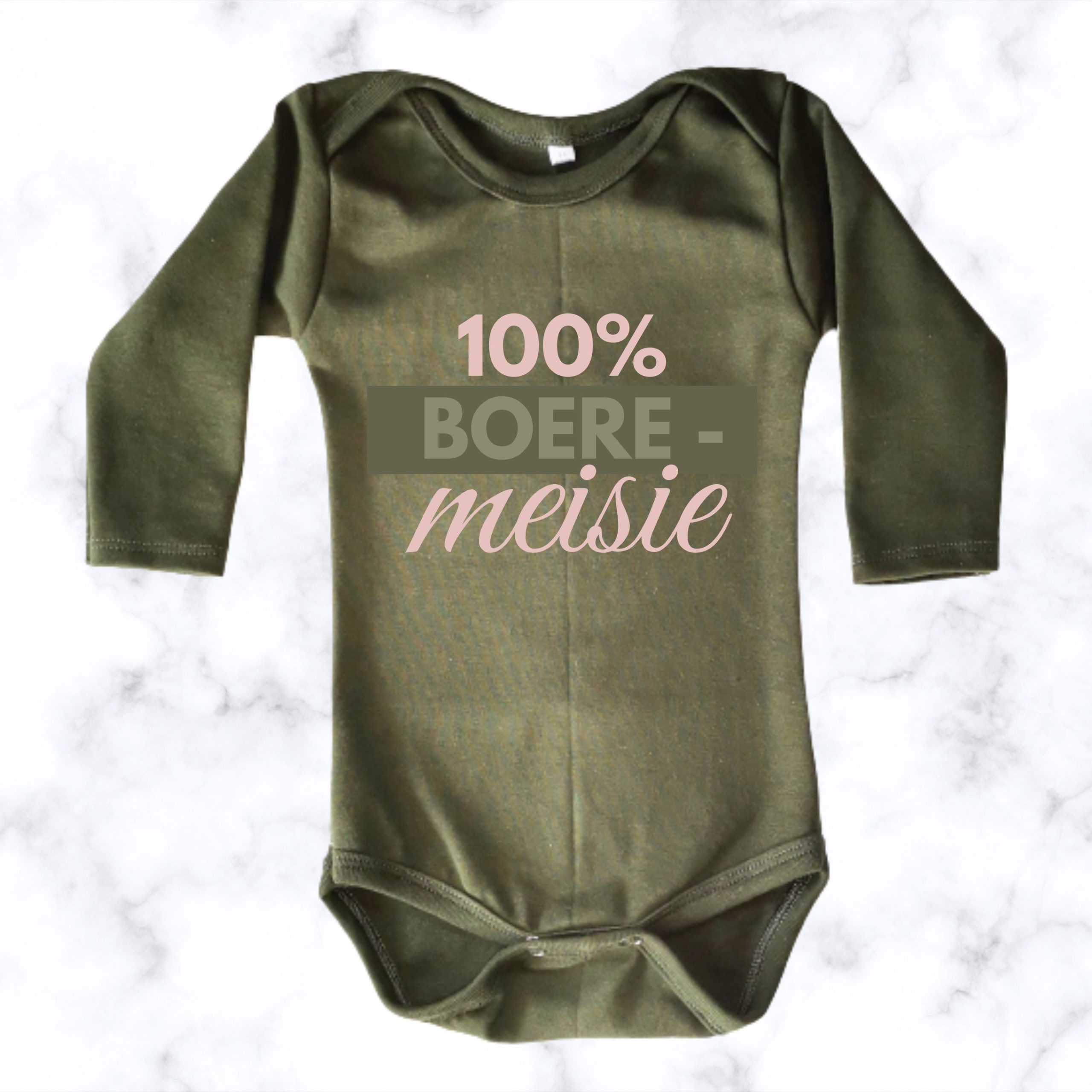 Our Boeremeisie | Printed Baby Onesie is a sweet and playful baby outfit with a charming front print. Soft, comfortable, and perfect for everyday wear, gifting, or baby photos.