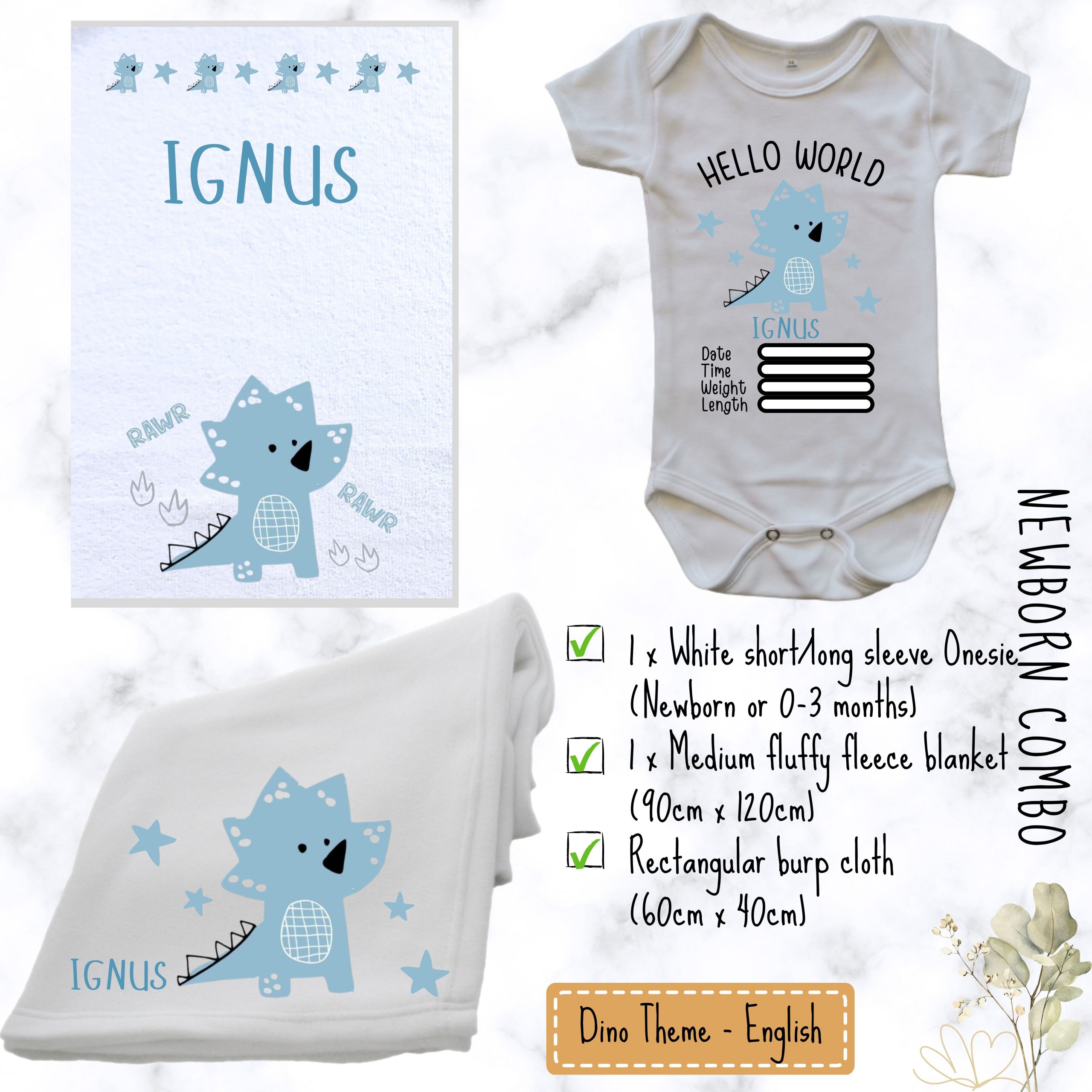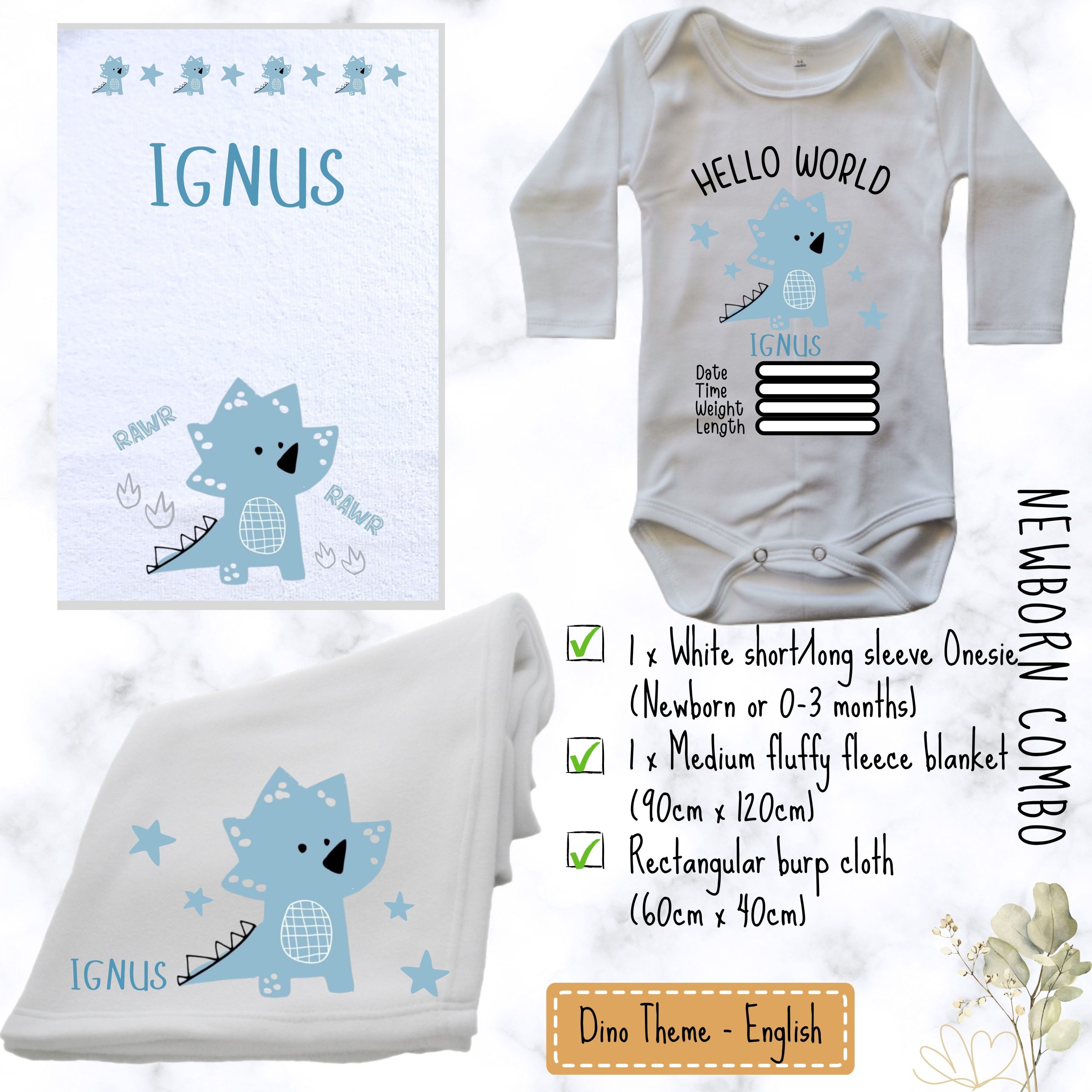 Our Dino Theme Baby Combo | Custom Printed Baby Combo is a sweet gift for a mommy-to-be.