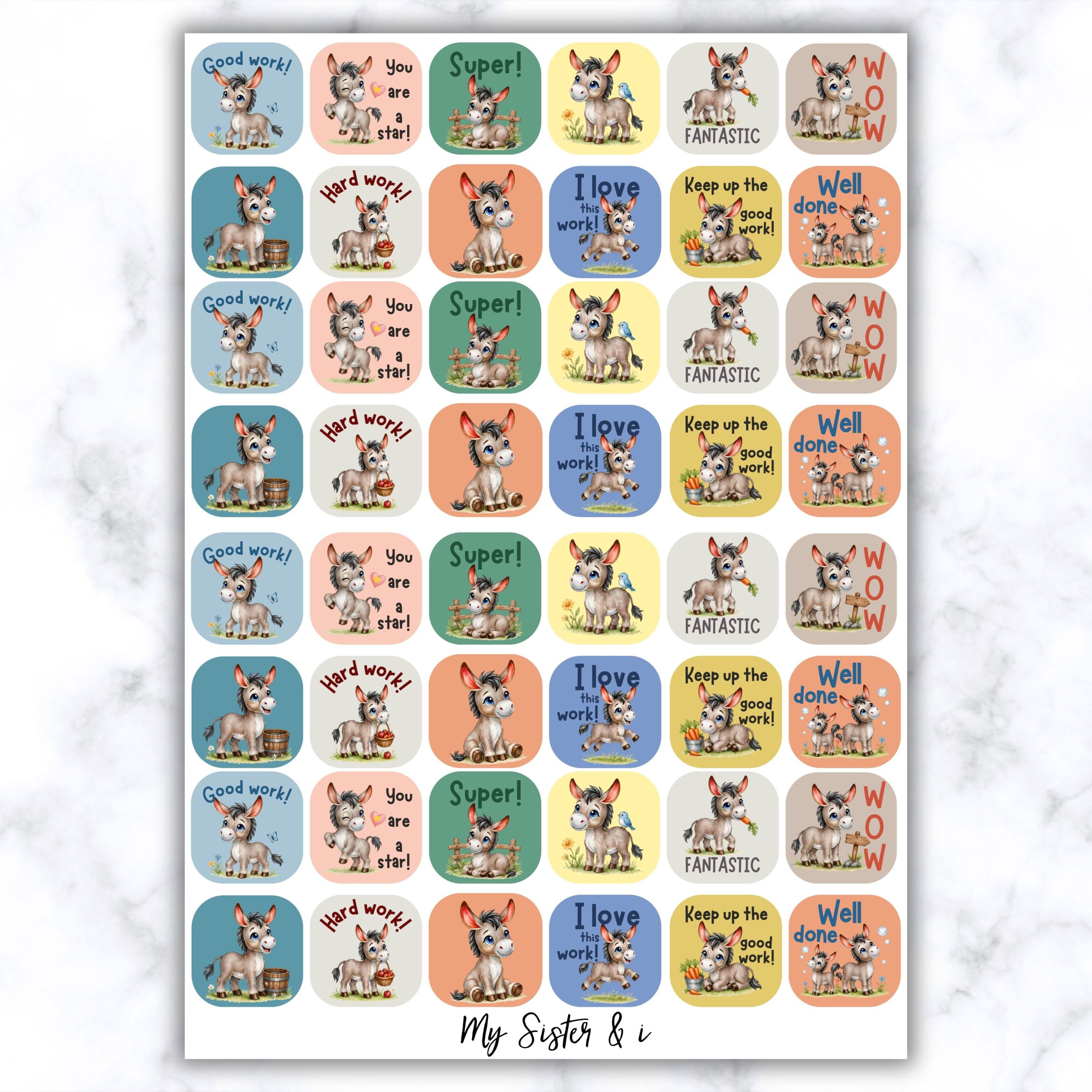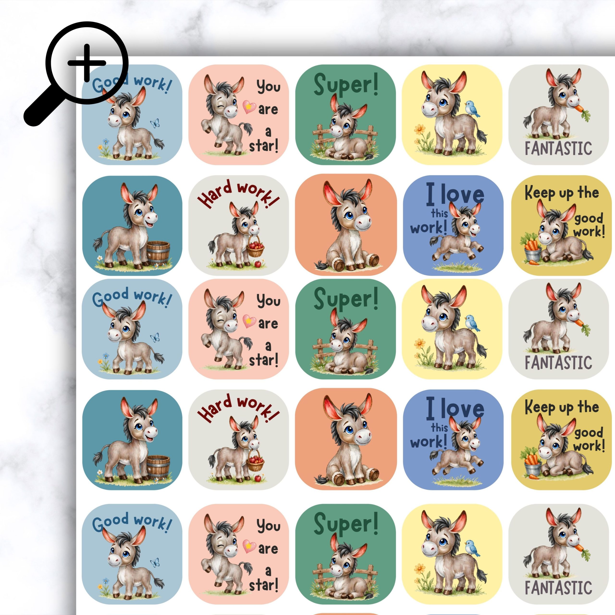 Inspire and motivate young learners with our Donkey Stickers, designed especially for teachers! These stickers are ideal for rewarding progress, effort, and achievements in the classroom, making learning fun and engaging. Each sticker is printed on high-quality gloss vinyl, thus ensuring durability and vivid colors. Add to your teaching toolkit with these motivational stickers, and watch your students’ enthusiasm for learning soar!