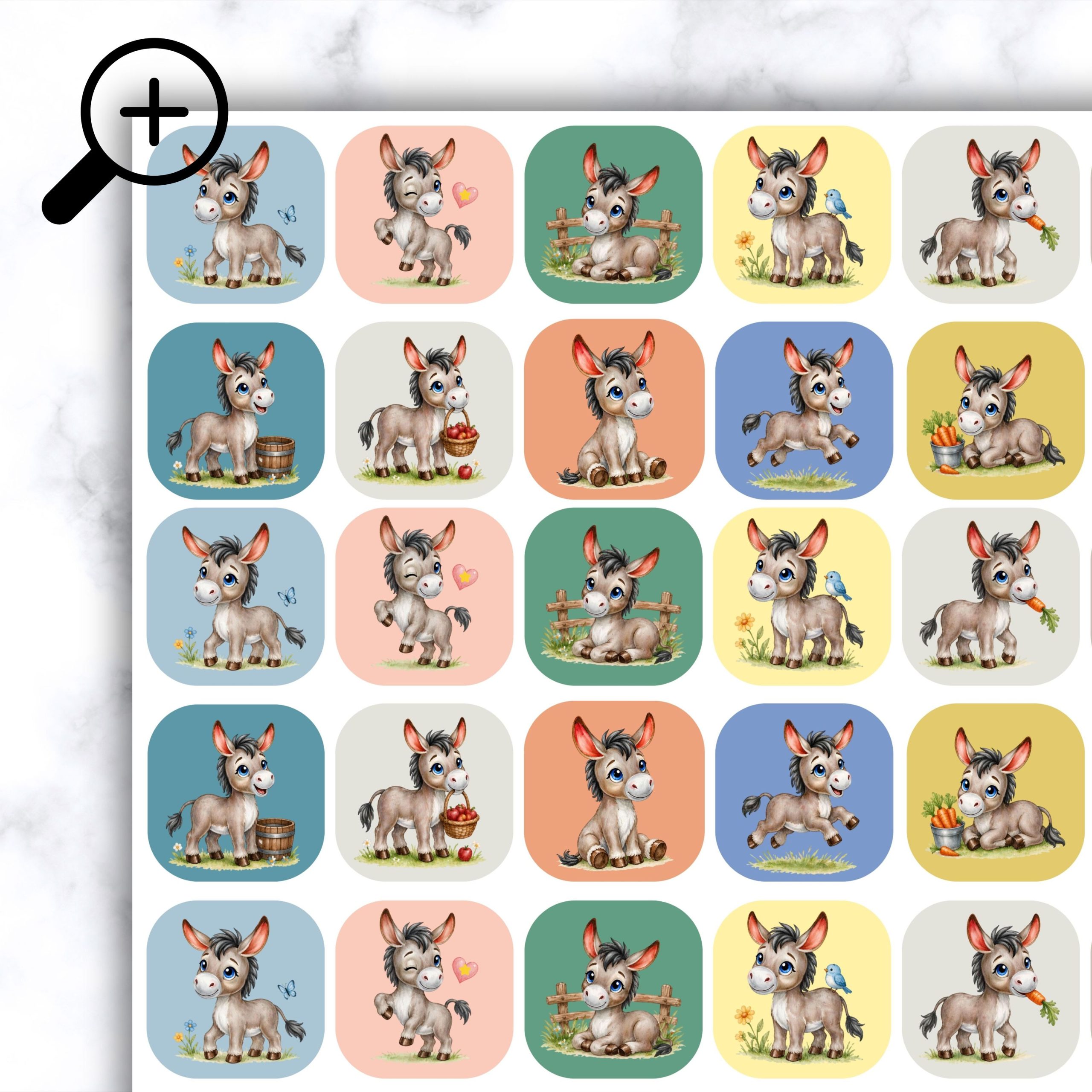 - Unique Theme: This set includes a delightful mix of cute donkeys, each with expressive and friendly features that bring a touch of personality and charm to workbooks.