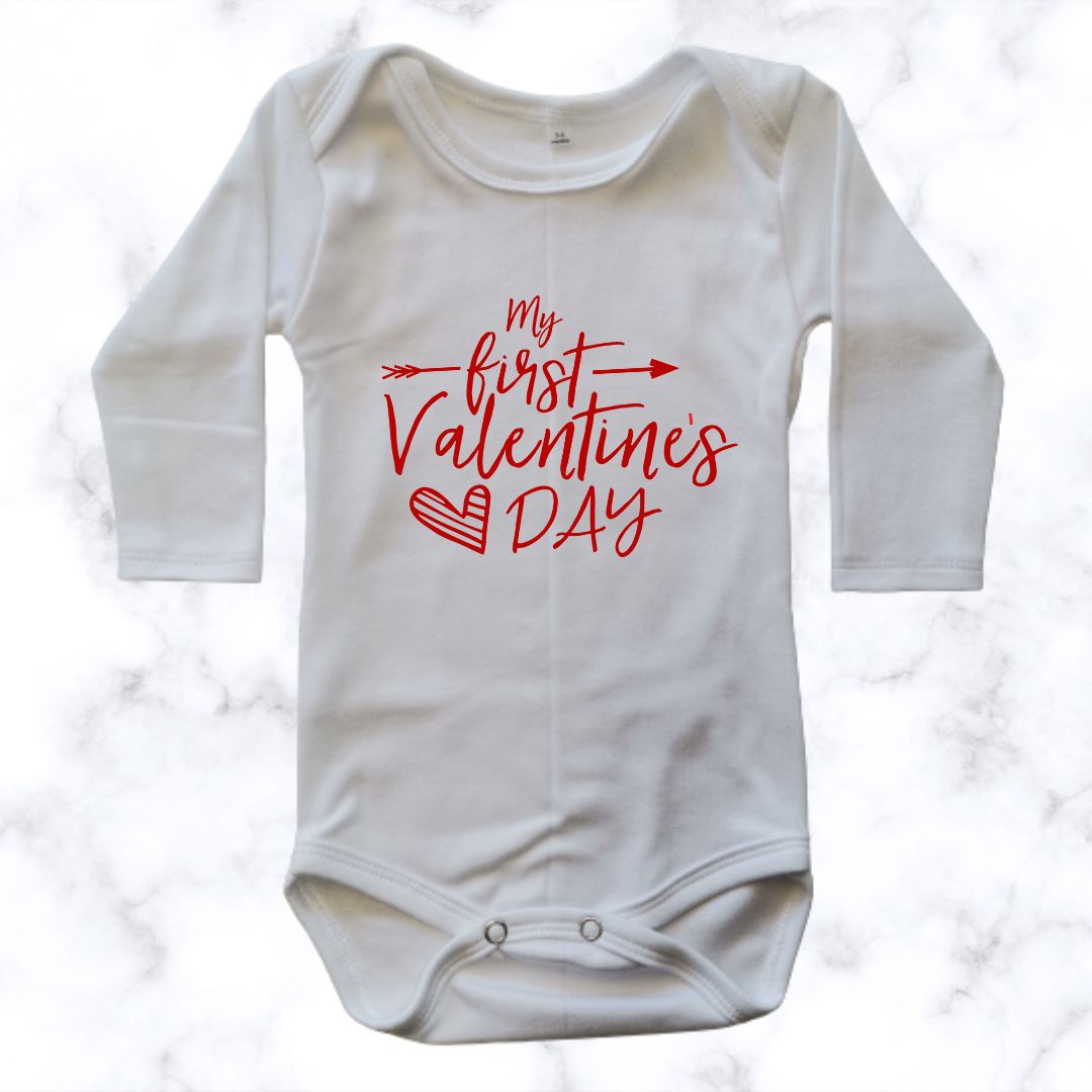 Celebrate a milestone full of love with our First Valentines Day | Custom Printed Cotton Onesie — the perfect outfit for baby’s very first Valentine’s Day.