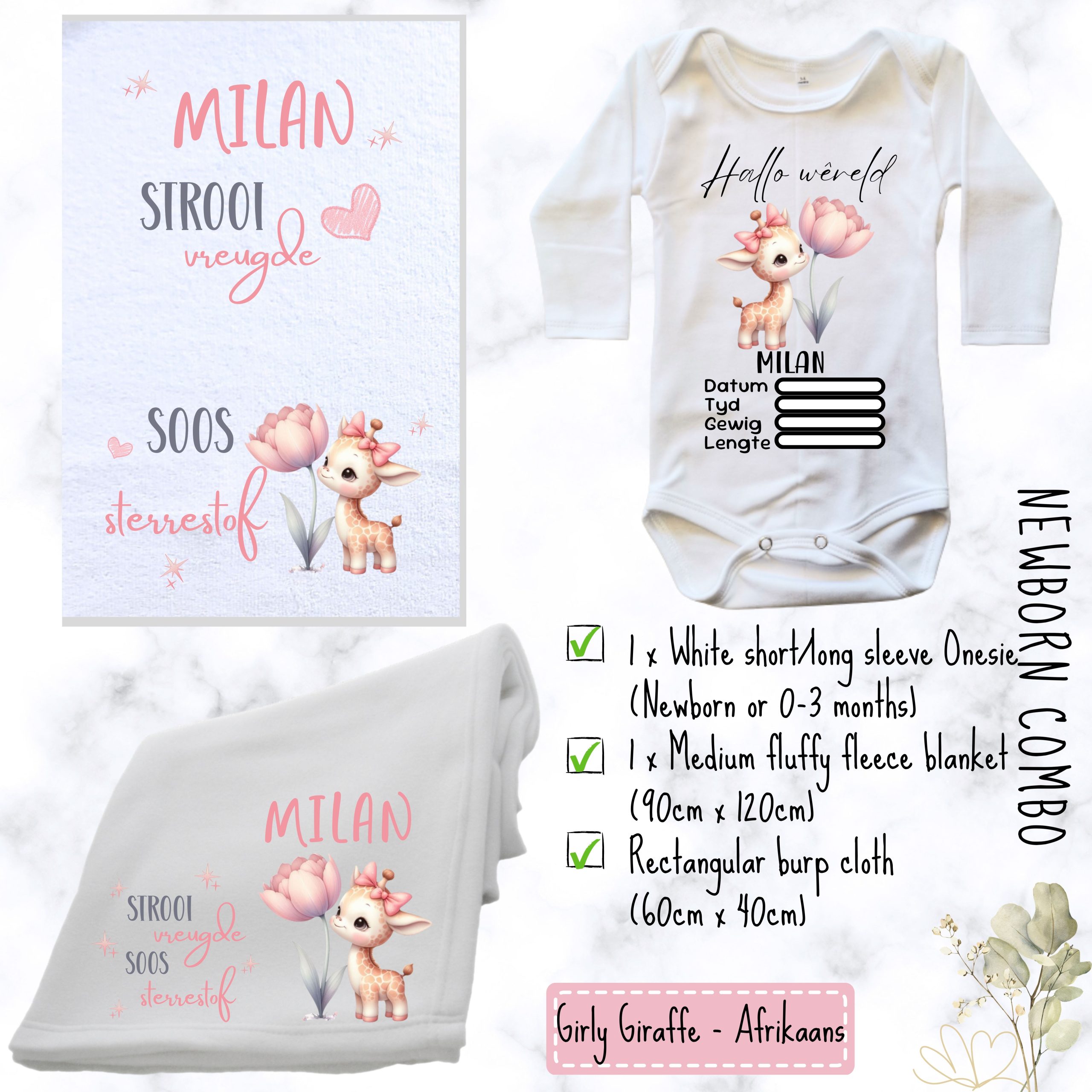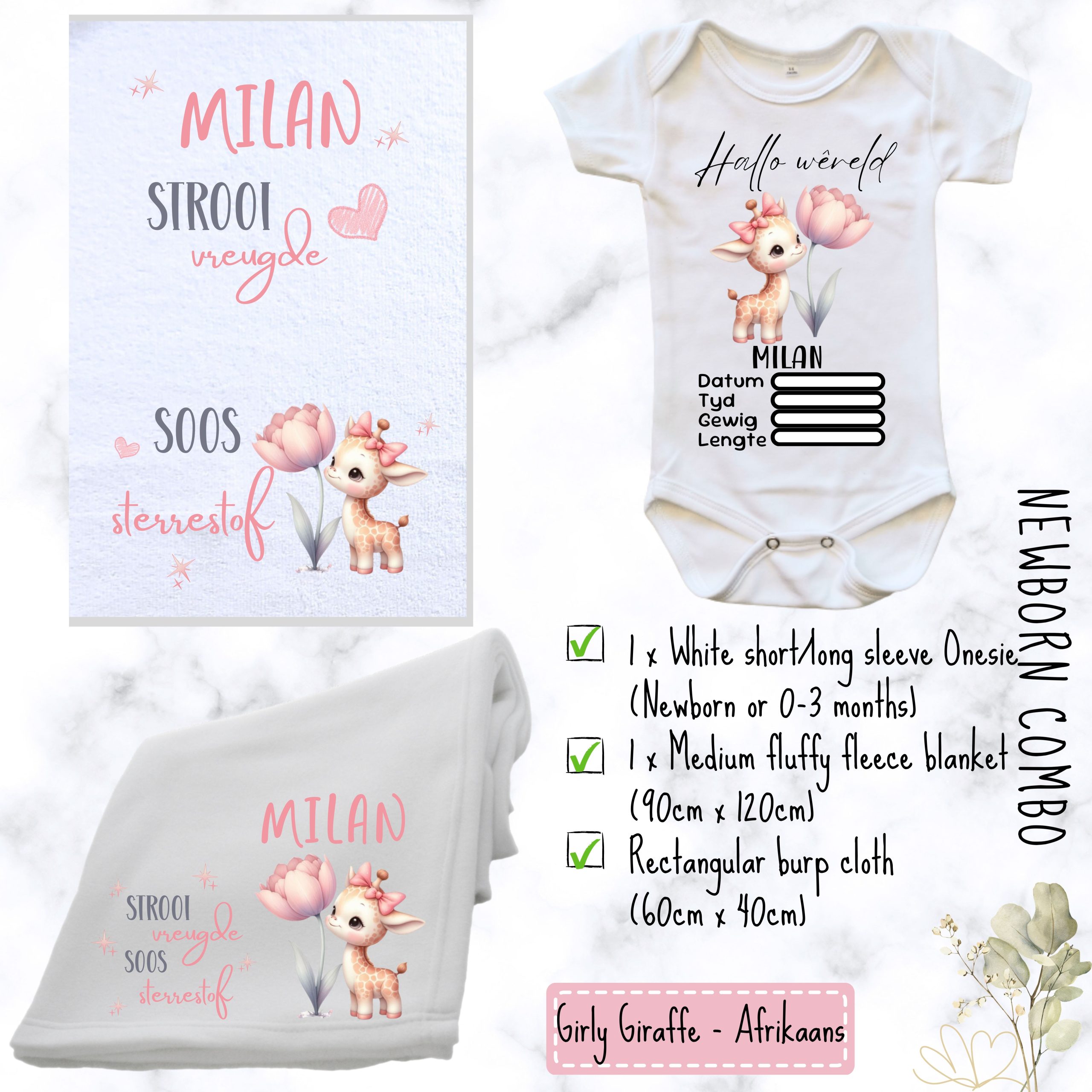 Our Girly Giraffe Baby Combo | Custom Printed Baby Combo is a sweet gift for a mommy-to-be.