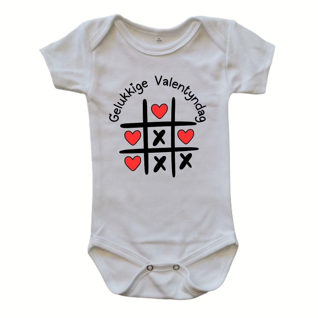 Cute Happy Valentine’s Day printed baby onesie made from soft, comfy fabric—perfect for Valentine’s celebrations and baby photos. Design also available in Afrikaans: Gelukkige Valentynsdag.