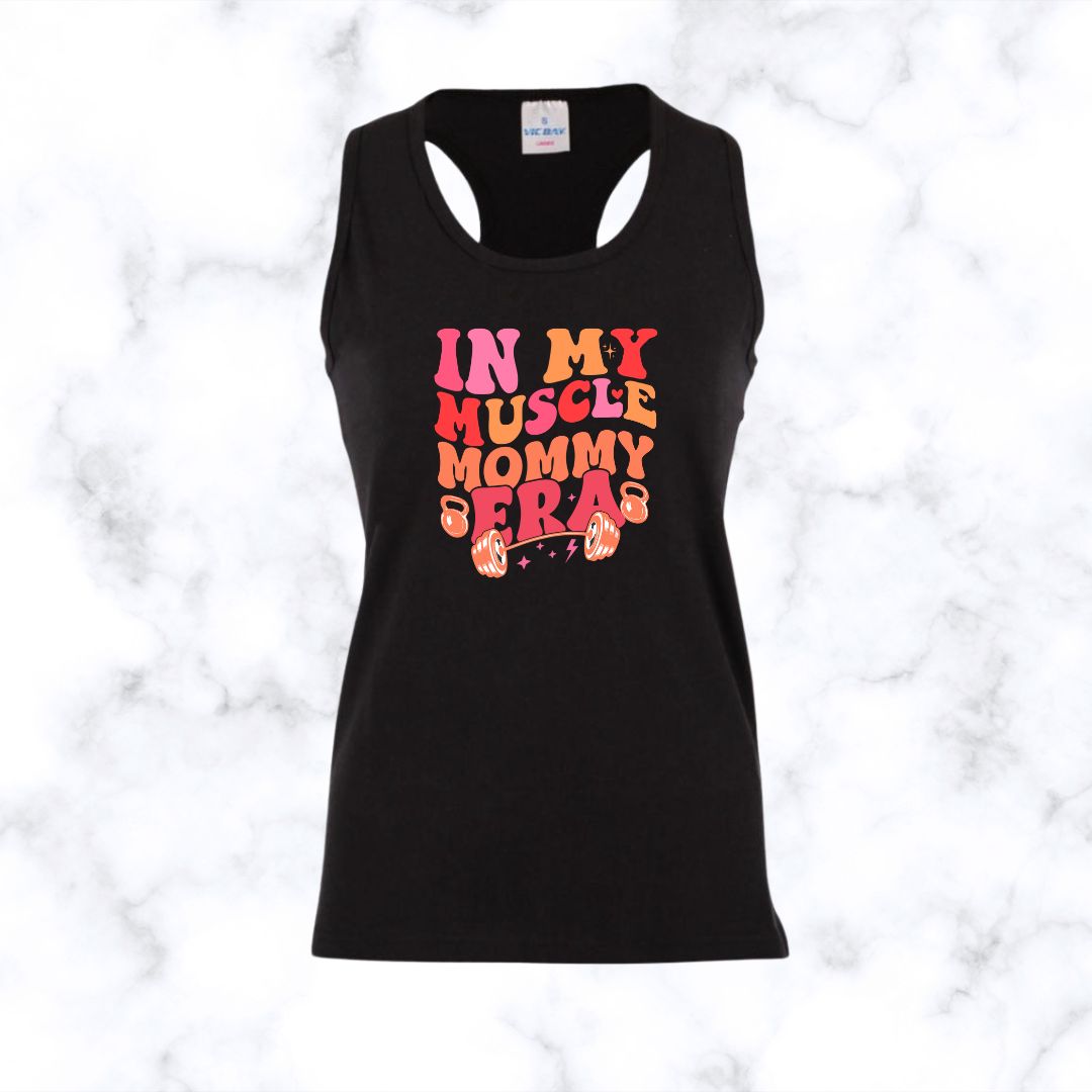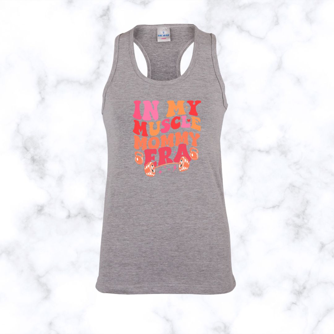 Meet our In My Muscle Mommy Era | Racerback made for training days, rest days, and everything in between. This racerback top offers a flattering athletic fit with a comfortable cut that supports movement. It works well for gym sessions, outdoor walks, cardio classes, and strength training. The racerback shape allows freer shoulder movement, while the streamlined silhouette layers easily under a hoodie or jacket.