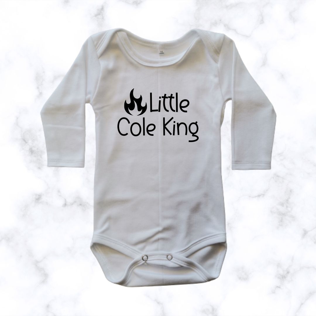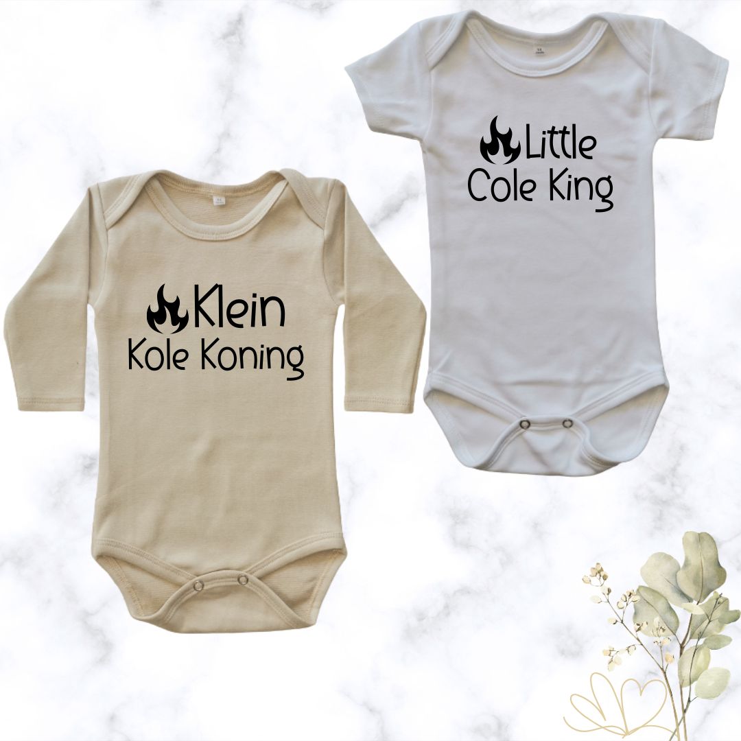 A fun Little Cole King (Kole Koning) braai-themed custom printed baby onesie.