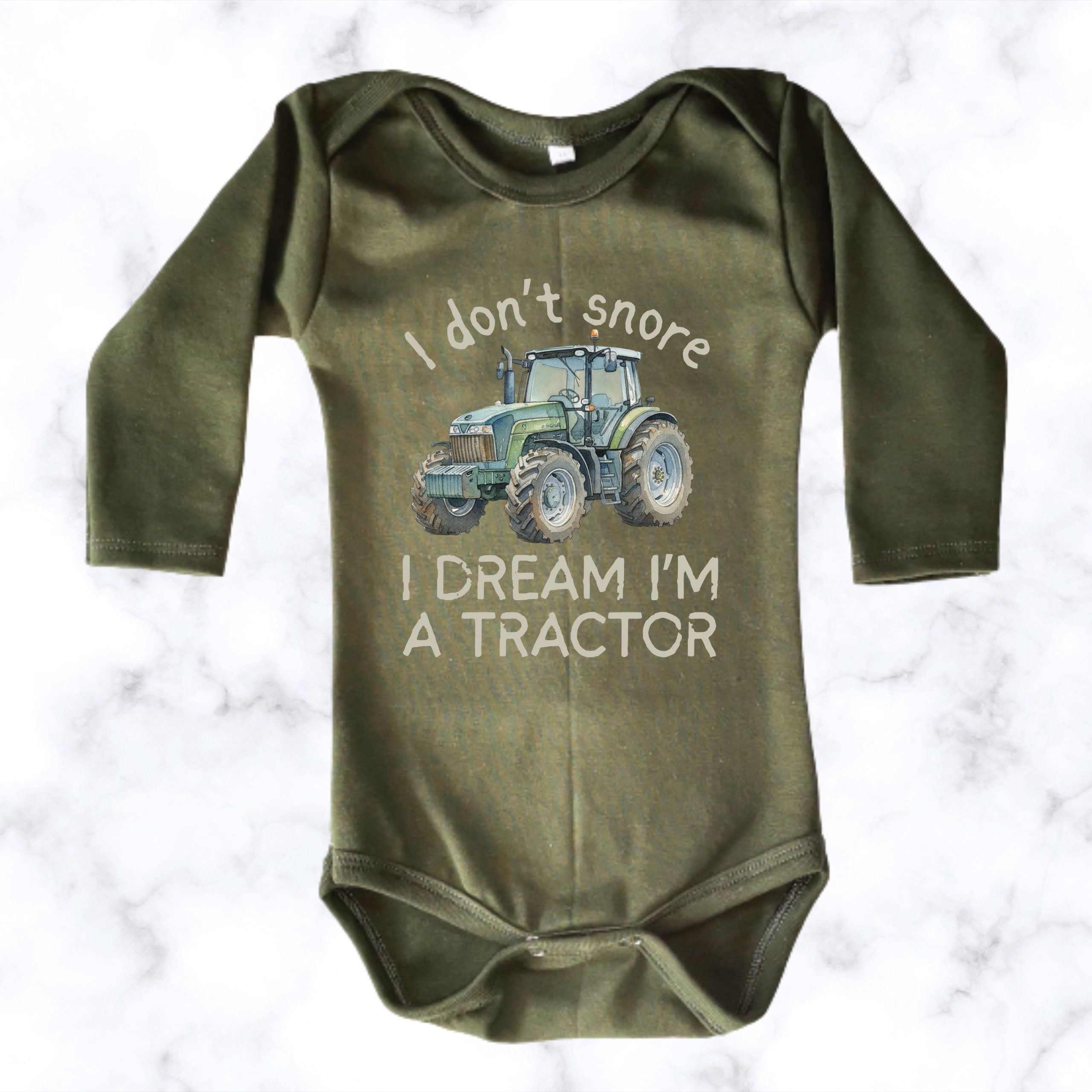 Our Little Tractor Dreamer | Printed Baby Onesie is a cute farm-inspired baby outfit with a fun tractor-themed print. Soft, comfortable, and great for everyday wear, gifting, or baby photos.