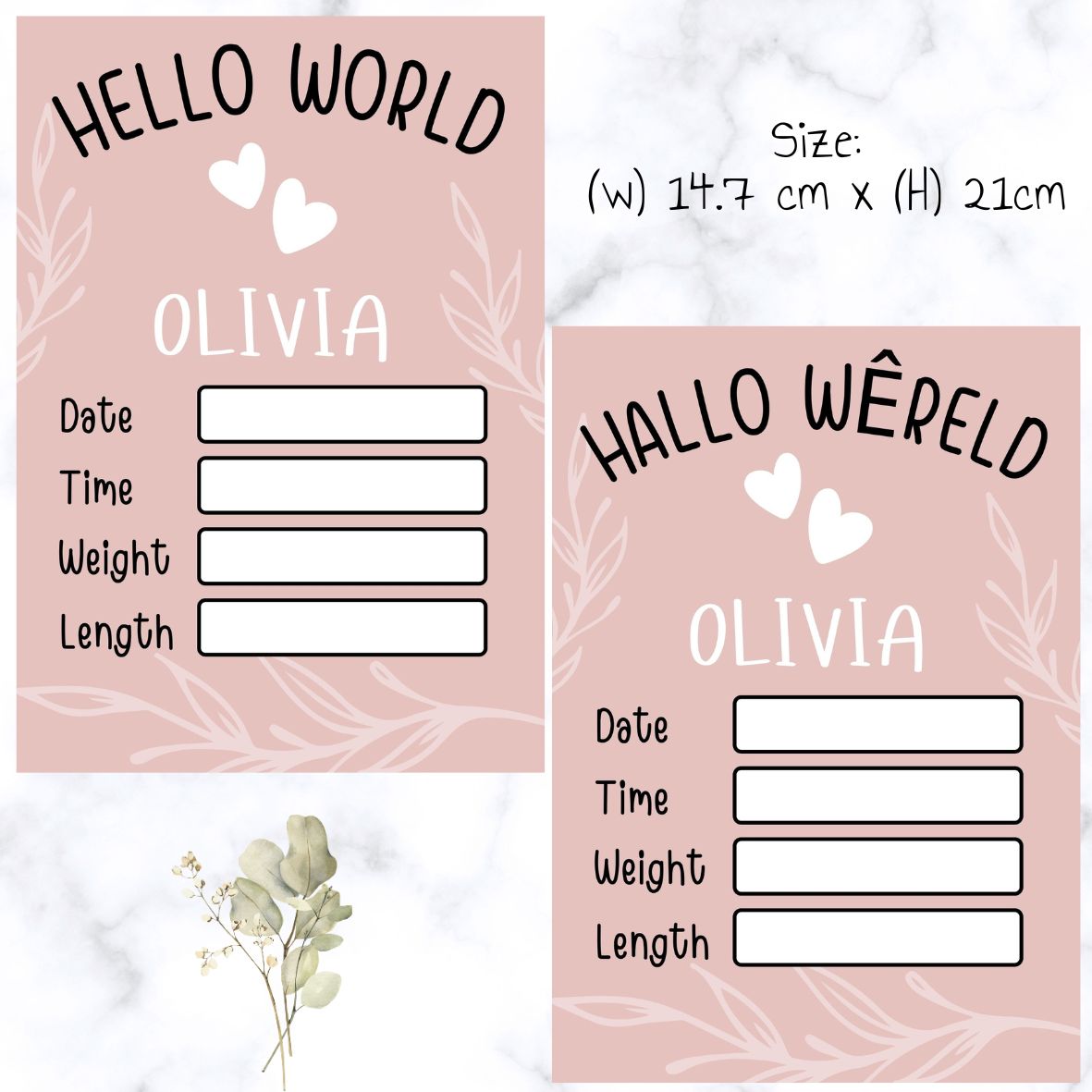 - 1 x Rectangular board – birth announcement information (use a whiteboard marker to write baby name and birth info). Note: Whiteboard marker not included.