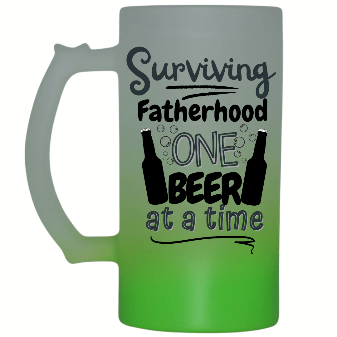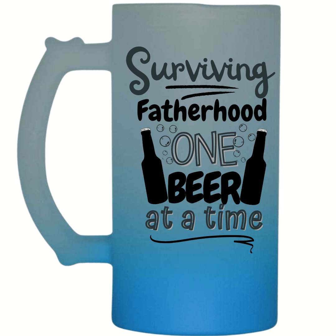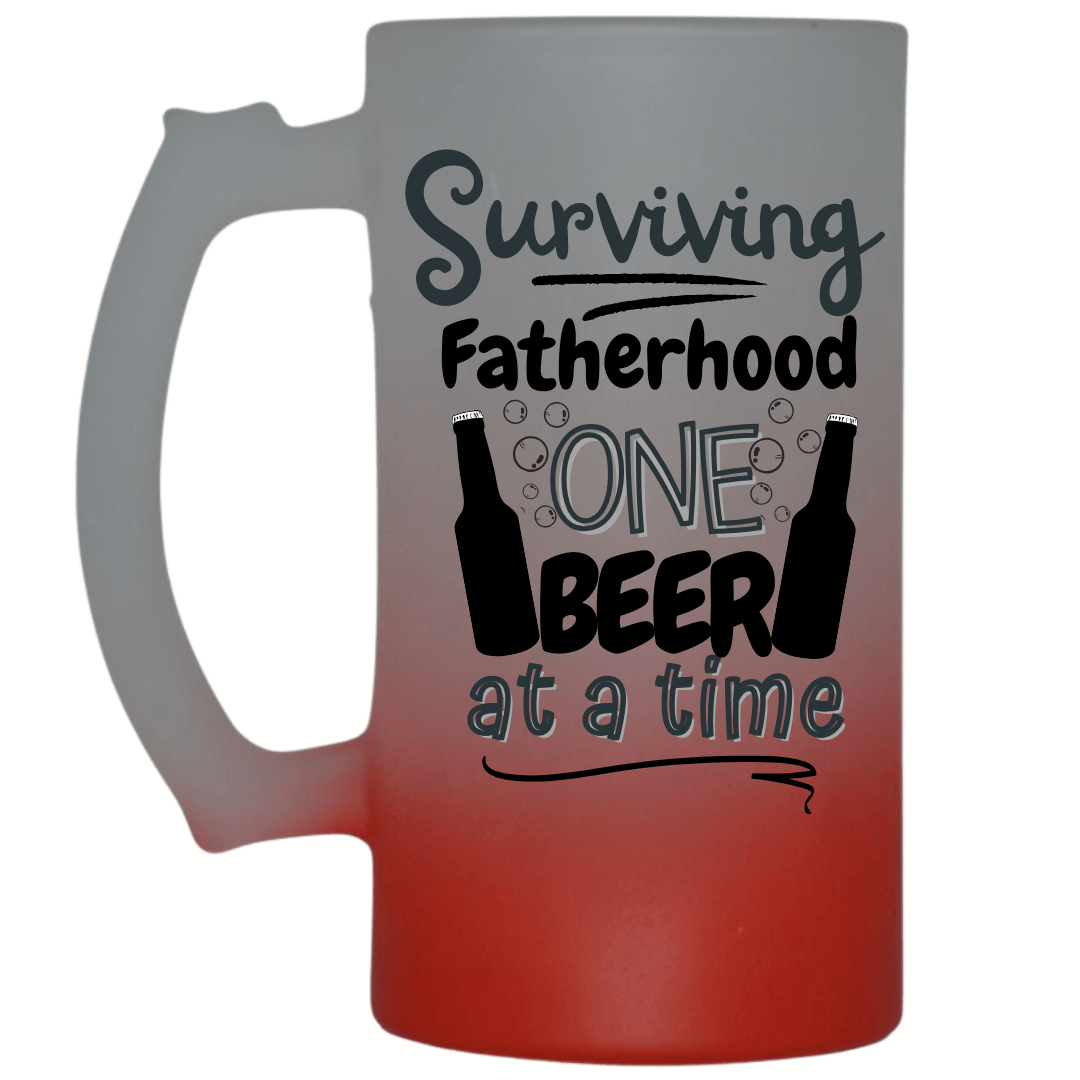 Enjoy every sip in style with our Surviving Fatherhood Frosted Beer Mug. Designed for beer lovers who want both quality and flair in their drinkware. Made from durable frosted glass, these mugs not only look impressive but also help keep your drinks colder for longer. Perfect for everyday use or special occasions, they bring a refreshing twist to any gathering.