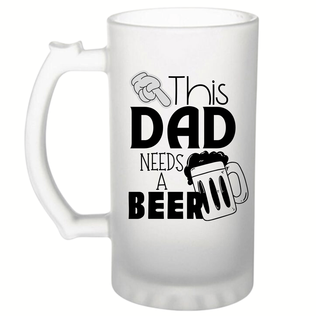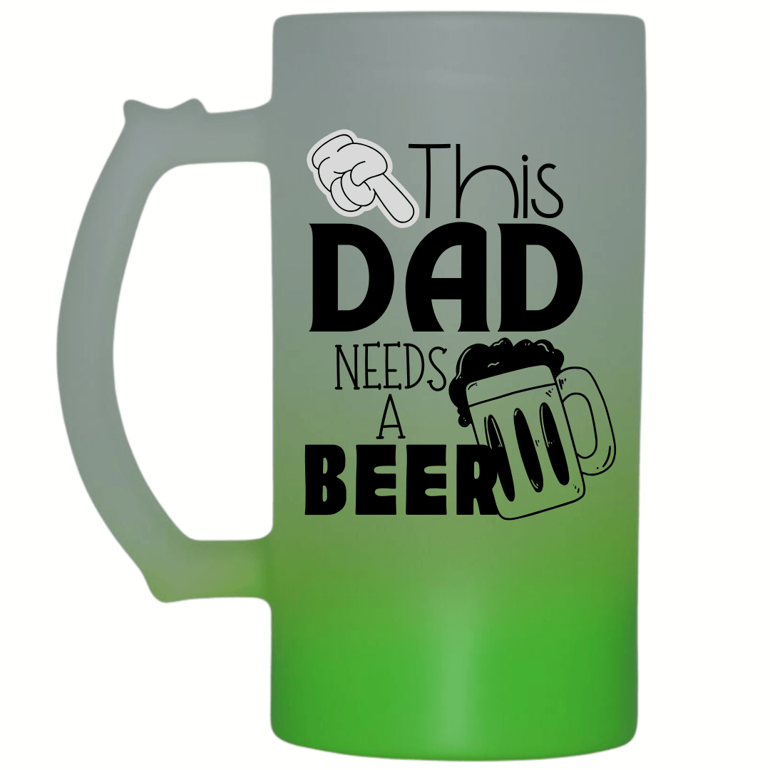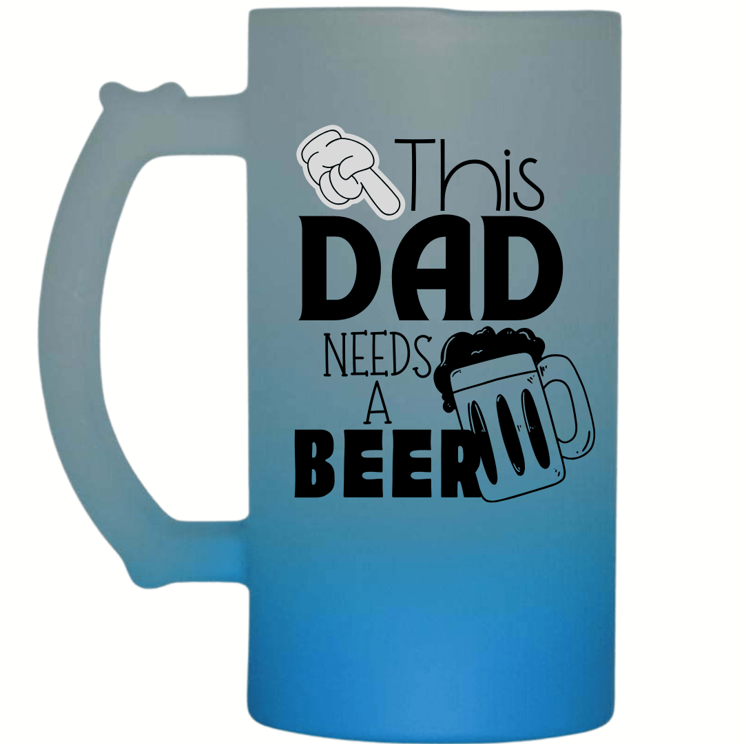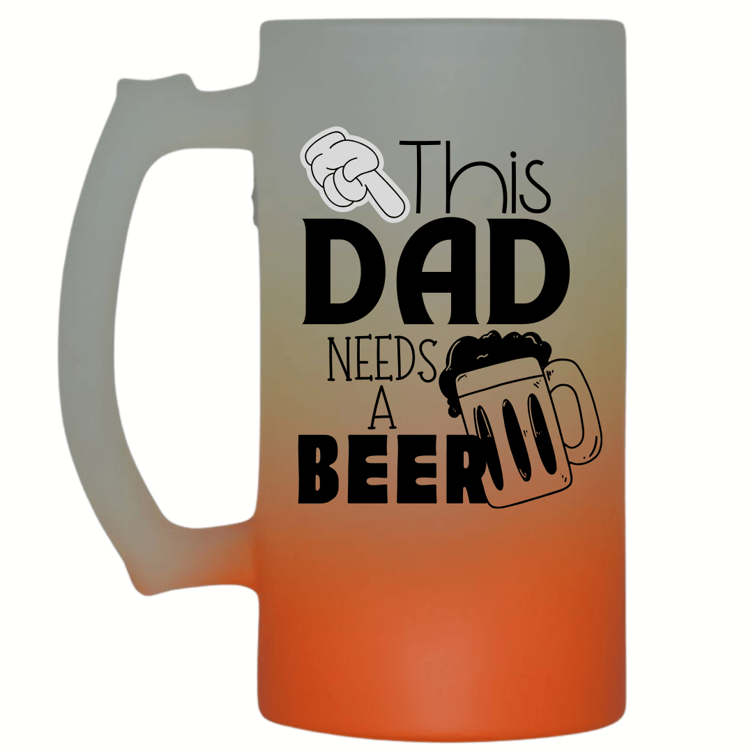 Serve your drinks in style with our This Dad Needs a Beer Frosted Beer Mug, available in plain, red, blue, orange, and green. Durable, stylish, and perfect for beer, cocktails, or soft drinks, these mugs are a must-have for any occasion.