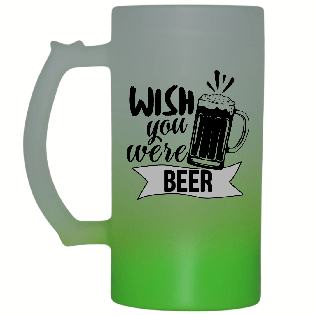 Enjoy every sip in style with our Wish You Were Beer Frosted Beer Mug. Designed for beer lovers who want both quality and flair in their drinkware. Made from durable frosted glass, these mugs not only look impressive but also help keep your drinks colder for longer. Perfect for everyday use or special occasions, they bring a refreshing twist to any gathering.