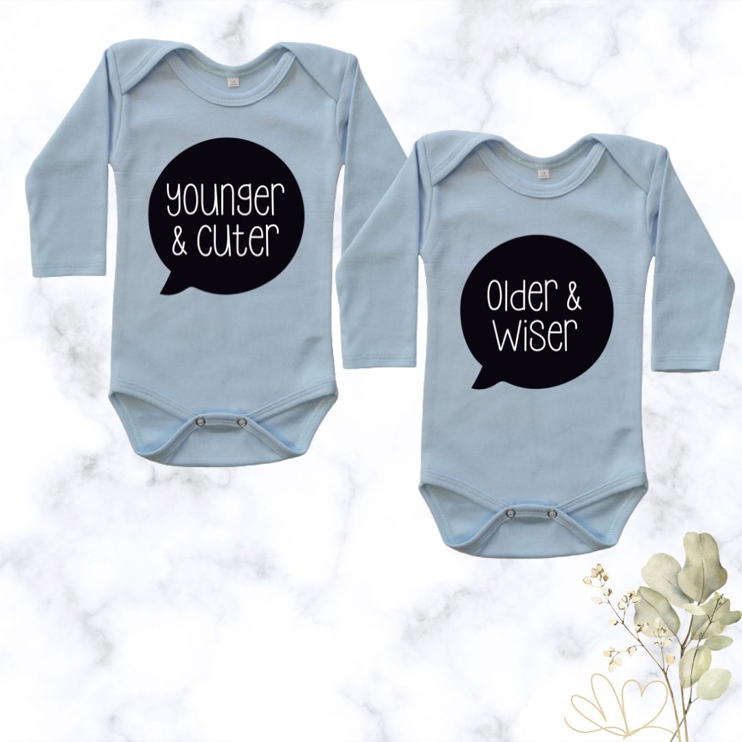 Add playful sibling banter to your twins’ style with our Younger and Cuter | Custom Printed Twin Onesies.